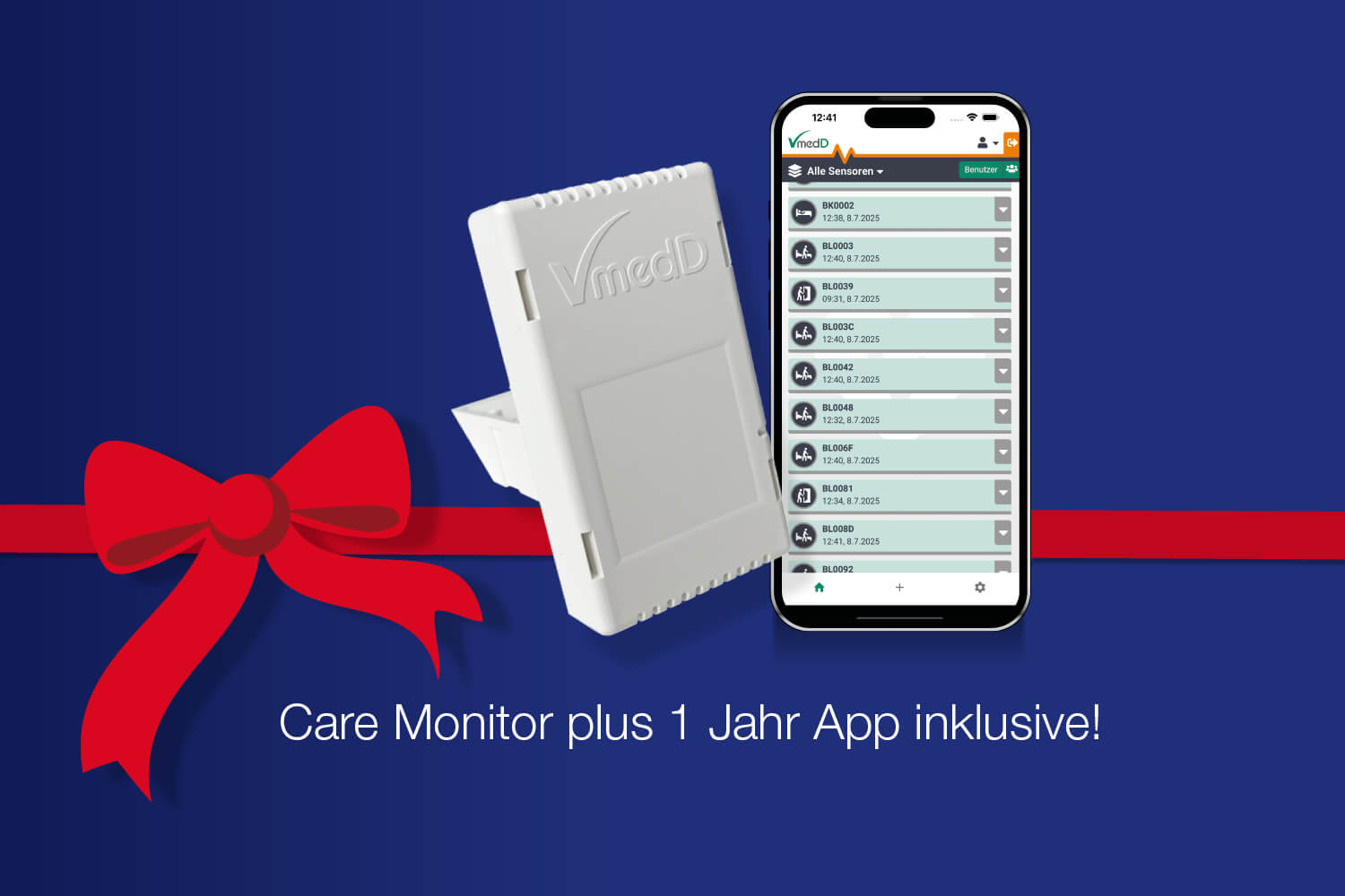 Profitieren Sie von unserem Weihnachtsangebot und erwerben Sie den Care Monitor Sensor und die App für ein Jahr zum reduzierten Preis und sparen Sie über 150 Euro!